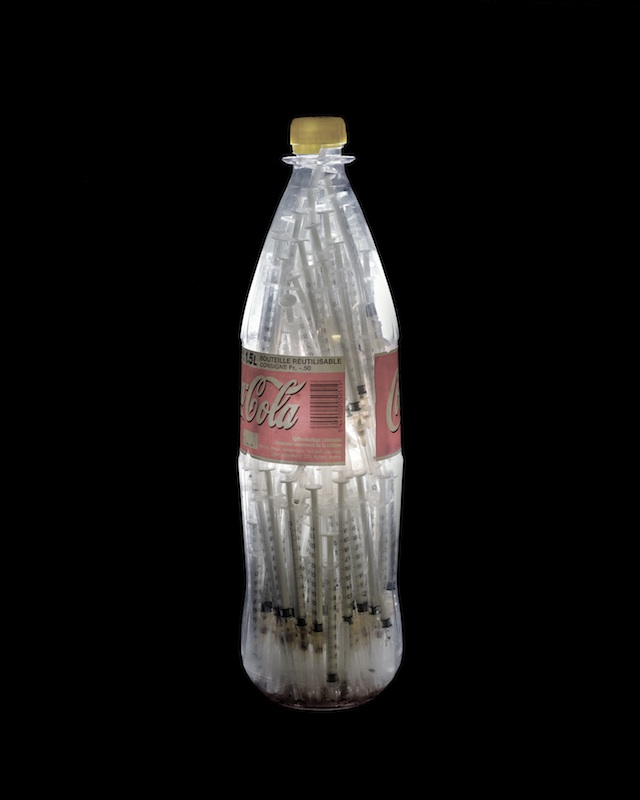 The project assembles several themes tackled through distinct formal registers. Drugs and accessories are reproduced as consumer products, close-up against uniform backgrounds. Photographed against a black background, with carefully applied lighting effects, the portraits of drug addicts are distinguished by their semi-pictorial treatment, inspired by the tradition of portraiture. The places where addicts meet and consume drugs are particularly elaborate, to the point of creating nocturnal landscapes that evoke artificial paradises. And the collection is completed by semi-abstract images, allegories of the ability of drugs to transcend reality. By developing a rich and varied visual language mixing different levels of representation and interpretation, Matthieu Gafsou manages to create a genuine sense experience.